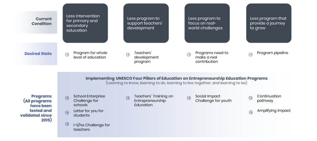 culminates in an opportunity to present their work at the Global Entrepreneurship Education Meeting. The whole journey will lead to entering a wider community of entrepreneurial leaders, educators, and social innovators who create a history of Change.
